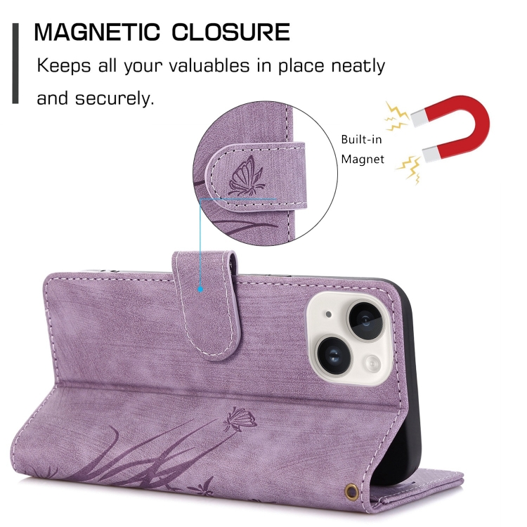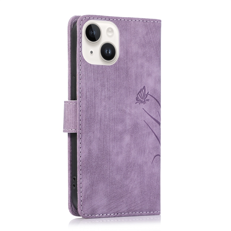 For iPhone 13 Orchid Butterfly Embossed Leather Phone Case (Purple)
