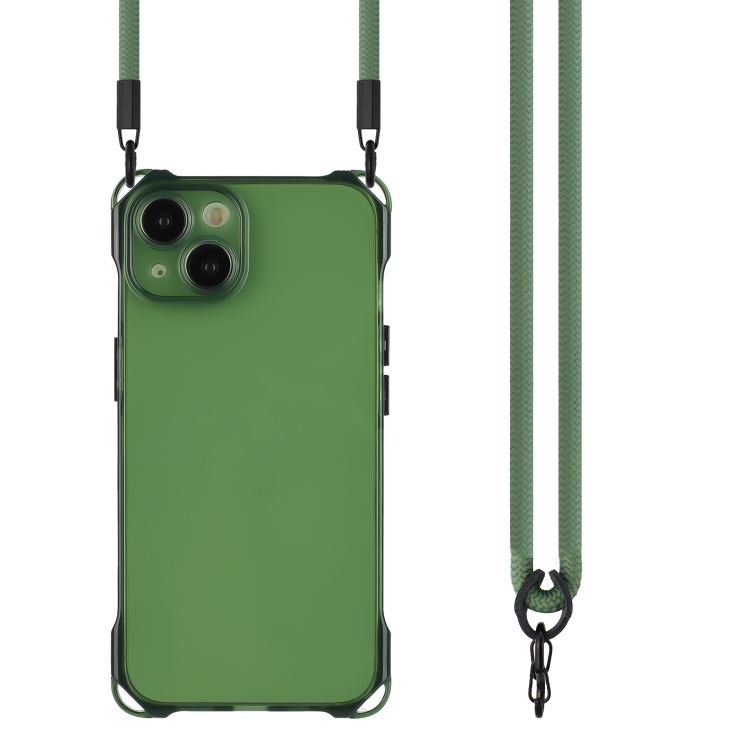 Funda para Teléfono TPU iPhone 13 a Prueba de Golpes Cuatro Esquinas con Cordón (Verde)