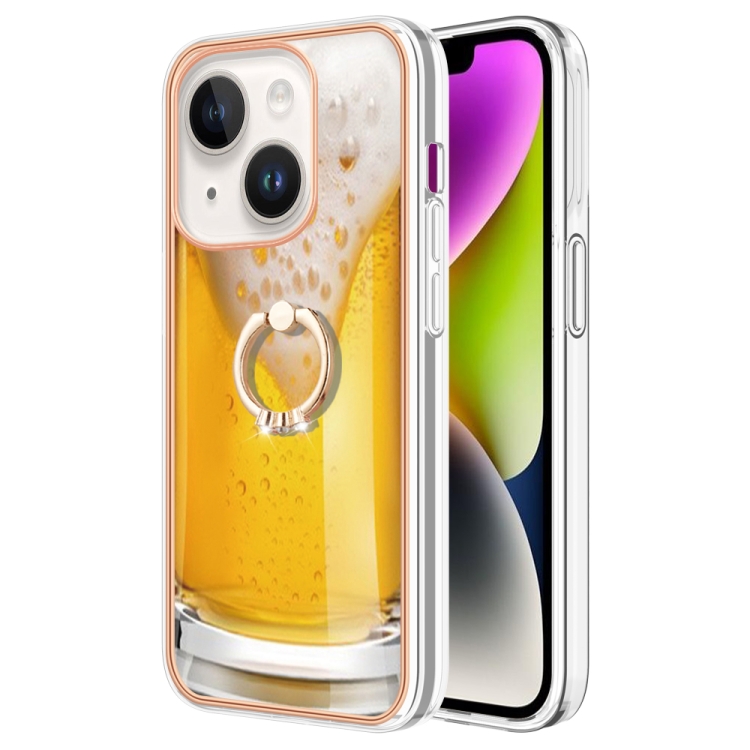 For iPhone 13 Electroplating Double-sided IMD Phone Case with Ring Holder (Draft Beer)