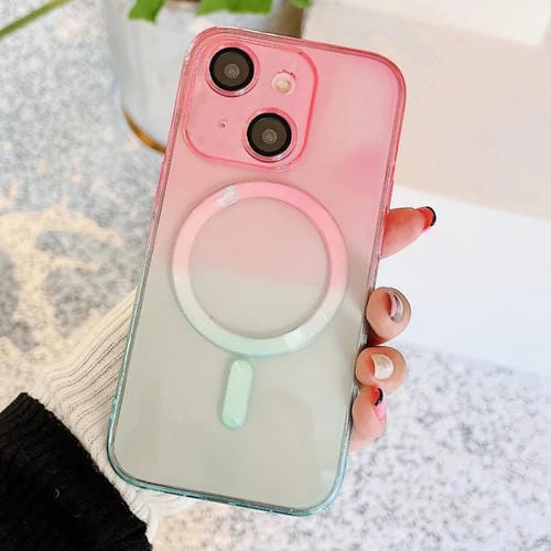 Funda para iPhone 13 Magsafe Magnetic TPU + Estuche con Color Degradado Acrílico (Rosa Verde)
