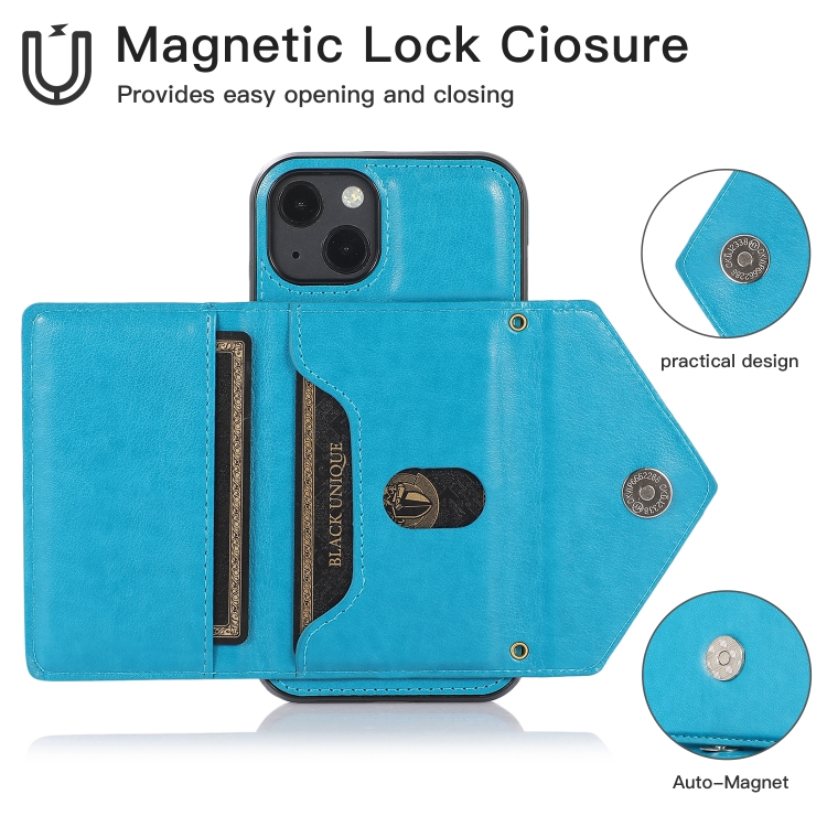 Funda de Contraportada iPhone 13 Mini TPU + PU con Soporte Ranura Tarjeta Billetera (Azul)
