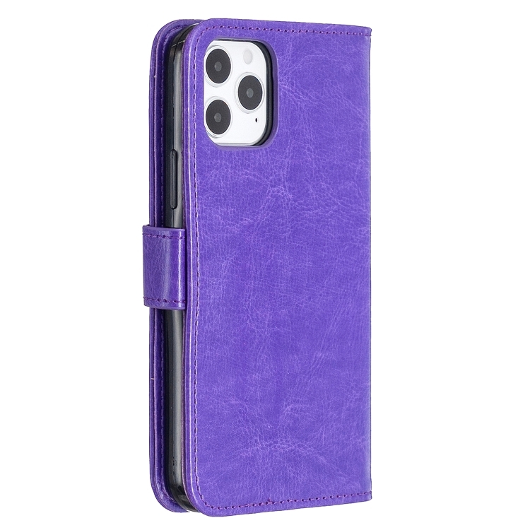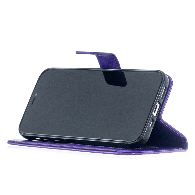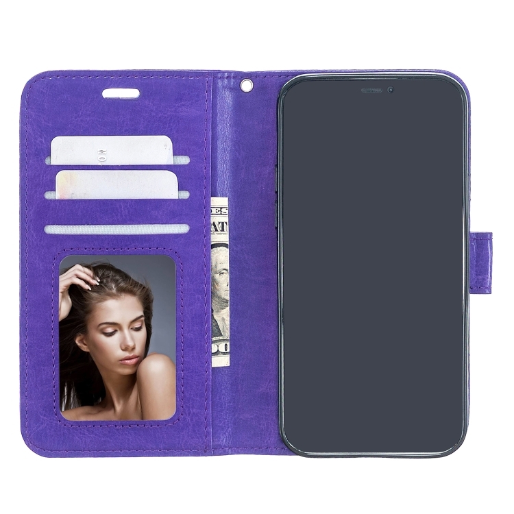 Funda de Cuero Crazy Horse para iPhone 13 Mini con Tapa Horizontal Soporte Ranuras Tarjetas Billetera Marco de Fotos (Púrpura)