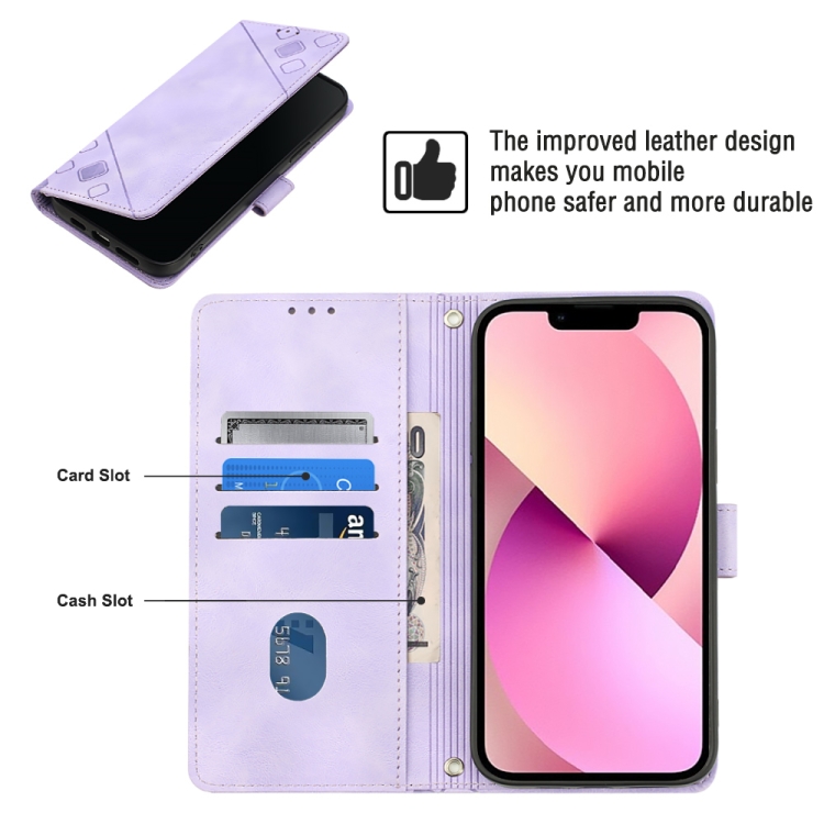 Estuche para Teléfono iPhone 13 Mini Cuero En Relieve Tacto de Piel (Púrpura Claro)