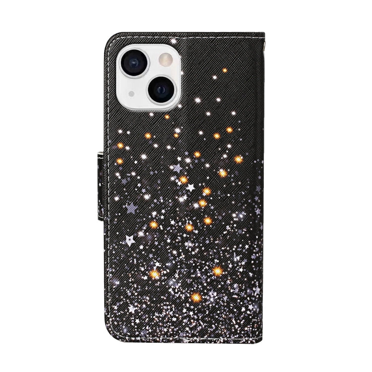 Funda de Cuero para iPhone 13 Mini con Tapa y Patrón de Dibujo Coloreado (Estrella de Cinco Puntas)