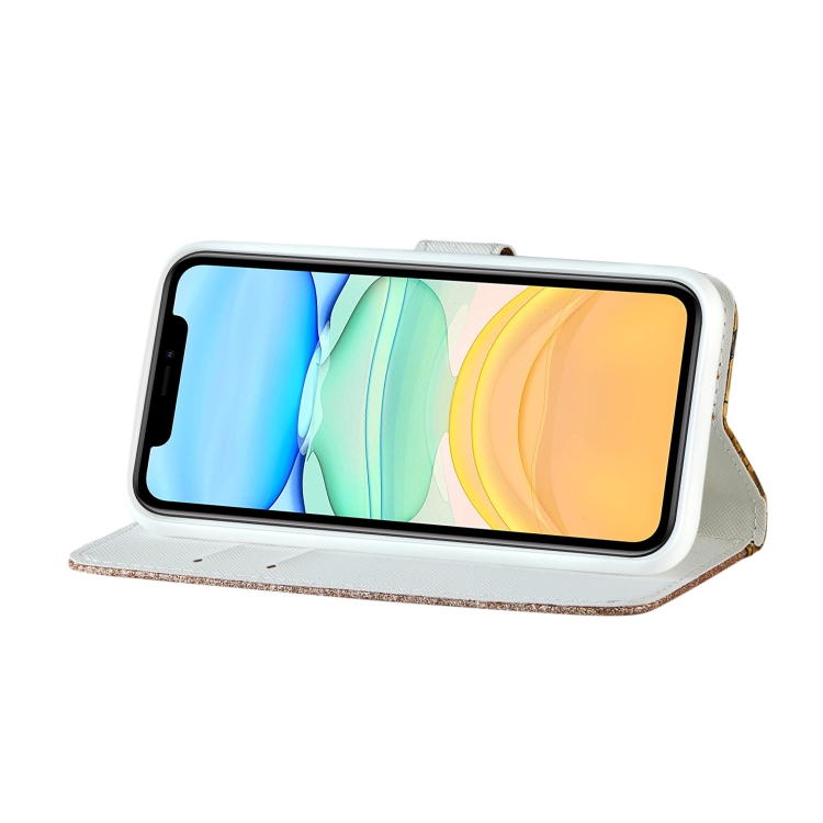 Funda de Cuero iPhone 13 Mini Tapa Horizontal Textura Cocodrilo Ranuras Tarjetas Soporte Billetera (Dorado)
