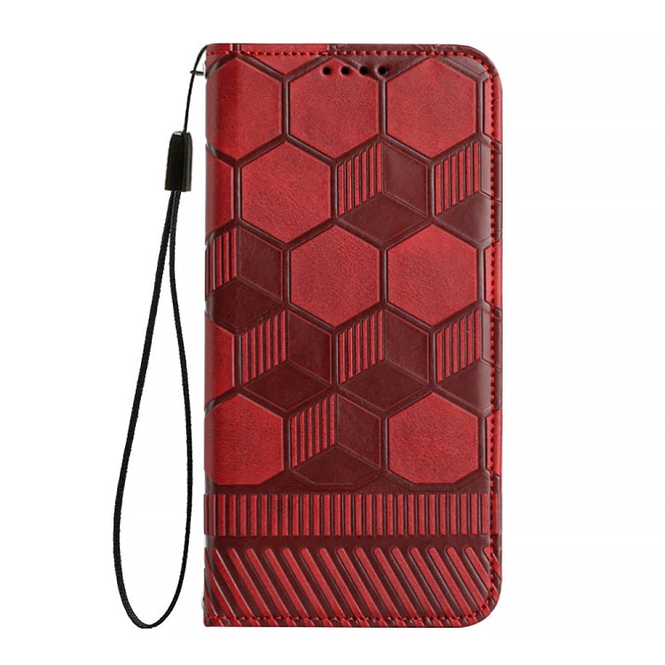 Funda de teléfono para iPhone 13 Mini con tapa de cuero magnético y textura de fútbol (Rojo)