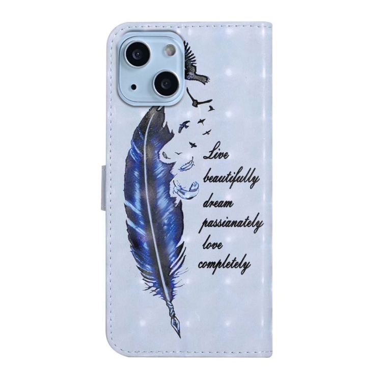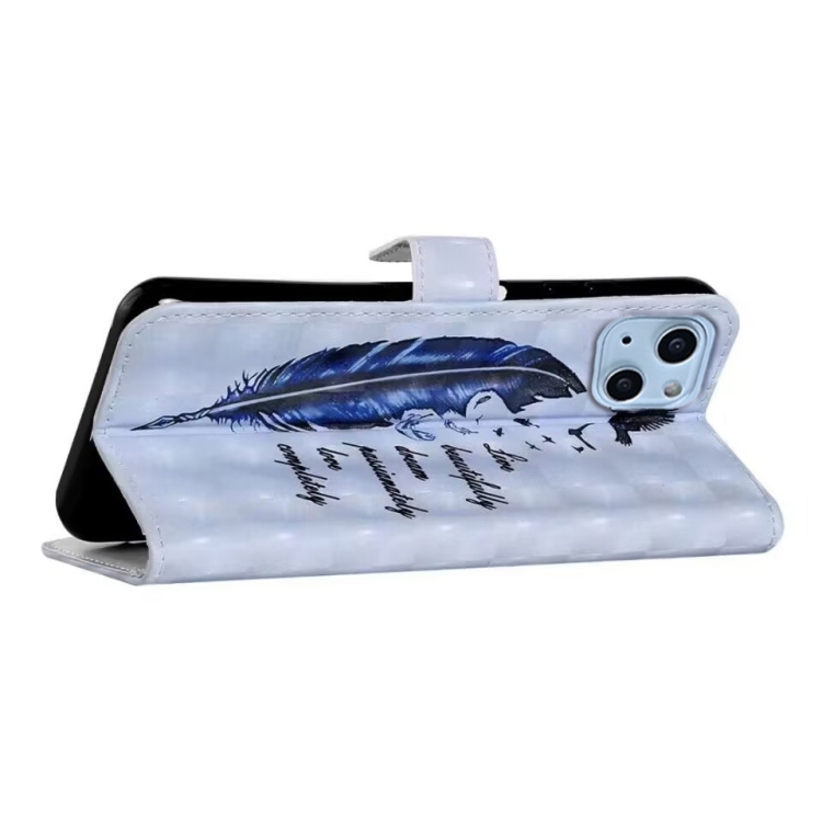 Funda para Teléfono iPhone 13 Mini Cuero Dibujo 3D En Relieve al Óleo (Pluma Azul)