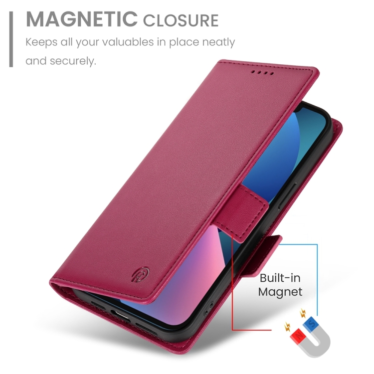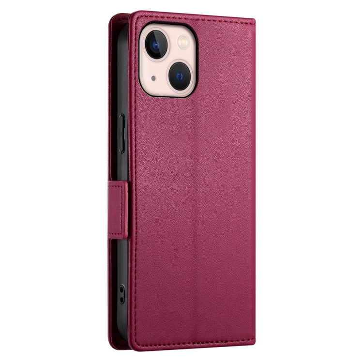 Funda para Teléfono iPhone 13 Mini Cuero Esmerilado Magnético con Hebilla Lateral (Rojo Vino)