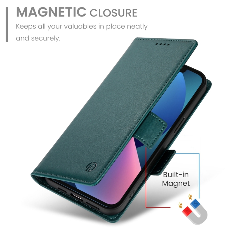 Funda para iPhone 13 Mini Cuero Esmerilado Magnético con Hebilla Lateral (Verde Oscuro)