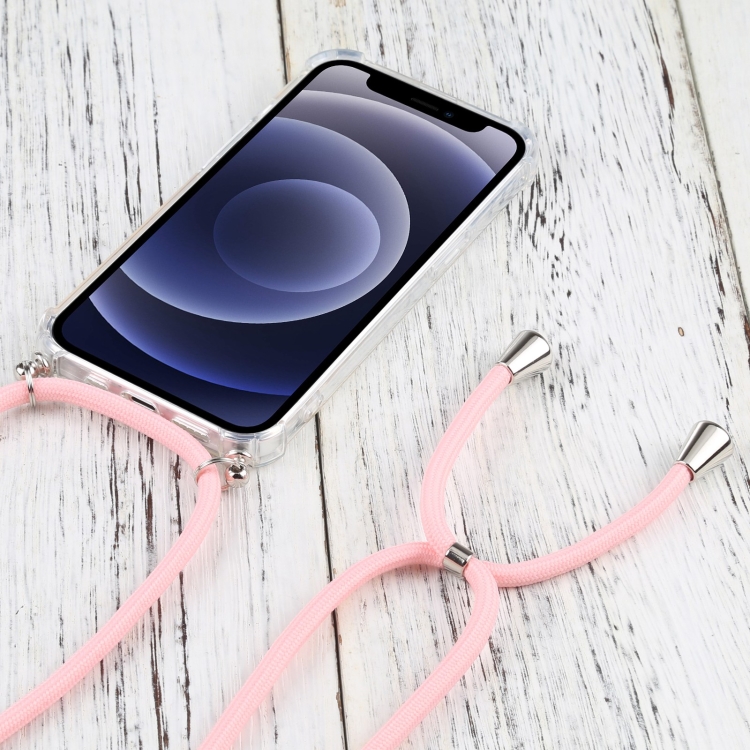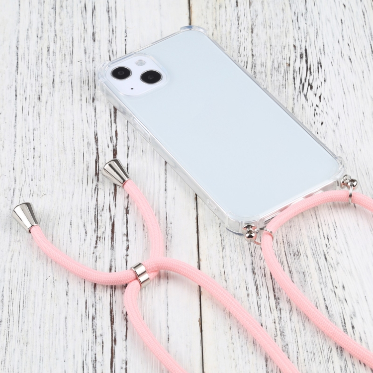 Funda Protectora para iPhone 13 Mini TPU Transparente a Prueba de Golpes Cuatro Esquinas con Cordón (Rosa)