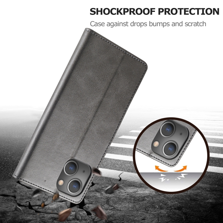 Funda para iPhone 13 Mini Lc.Imeeke Calf Texture Horizontal Flip de Cuero con Soporte y Ranuras para Tarjetas y Billetera (Gris)