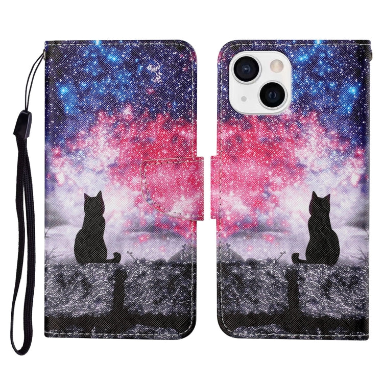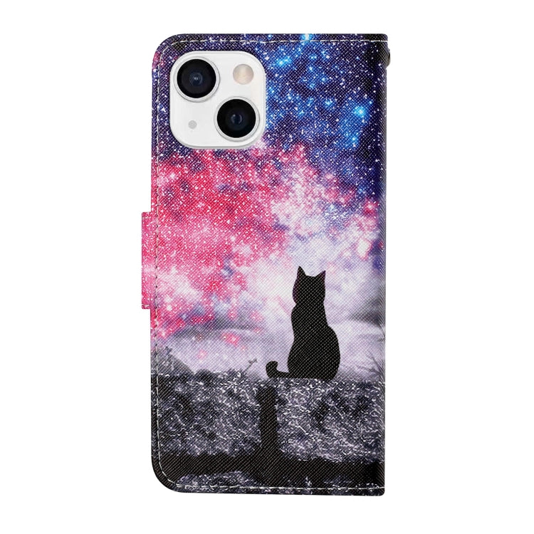 Funda de Cuero para iPhone 13 Mini con Tapa Horizontal y Patrón de Gato Estrellado