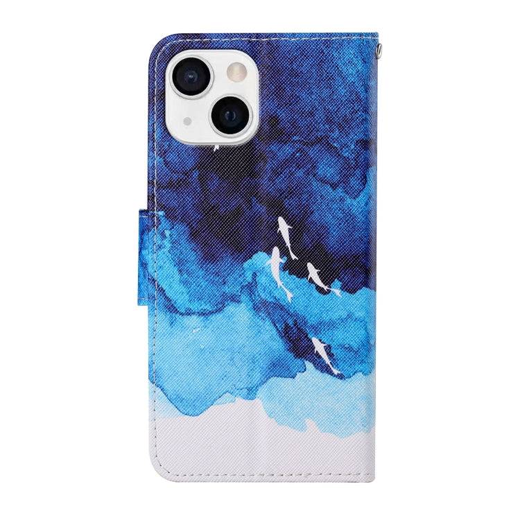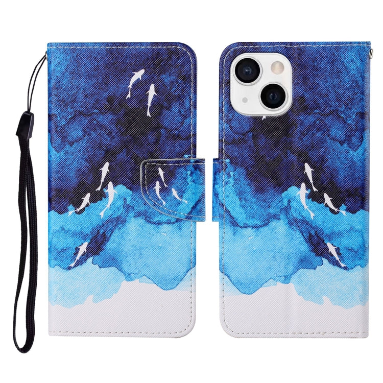 Funda de Cuero para iPhone 13 Mini con Tapa Horizontal Patrón Peces de Acuarela