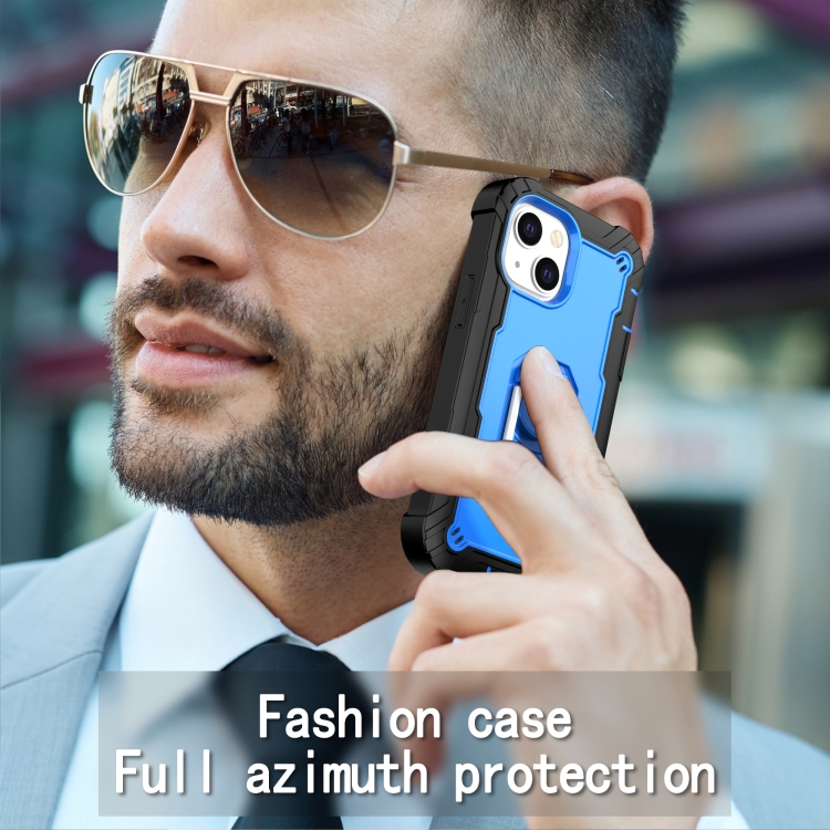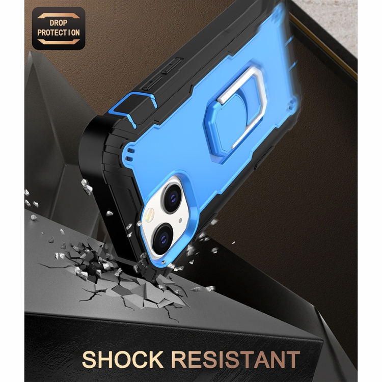 Funda para iPhone 13 Mini PC con Goma 3 Capas a Prueba de Golpes con Soporte Giratorio (Negro + Azul)