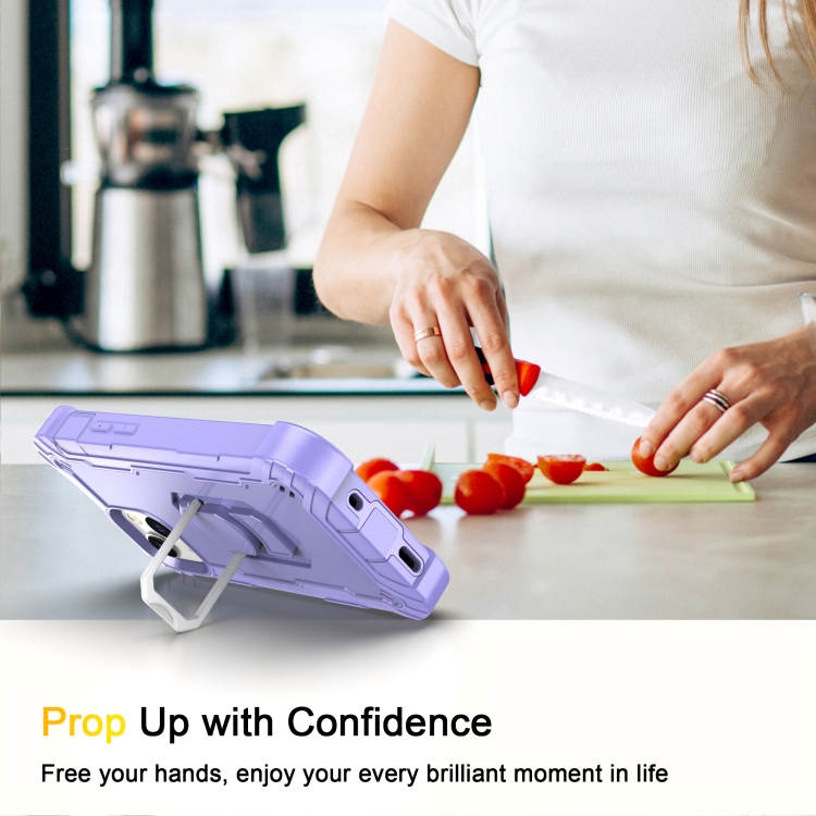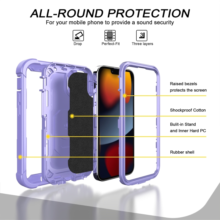 Funda para iPhone 13 Mini PC + Goma 3 Capas Prueba de Golpes con Soporte Giratorio (Púrpura)
