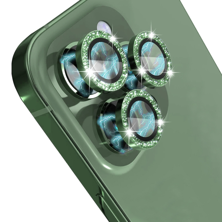 Protector de Lente de Cámara Northjo para iPhone 13 Pro y 13 Pro Max Vidrio Templado Bling Glitter Metal Ring (Verde)