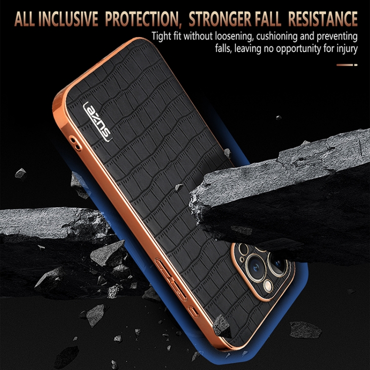 Estuche para teléfono Azns iPhone 13 Pro Cobertura total Textura de cocodrilo Marco galvanizado (Azul)