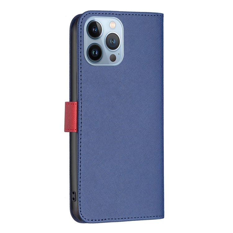 Funda para Teléfono iPhone 13 Pro Bf13 Color Matching Cross Texture Cuero (Azul)