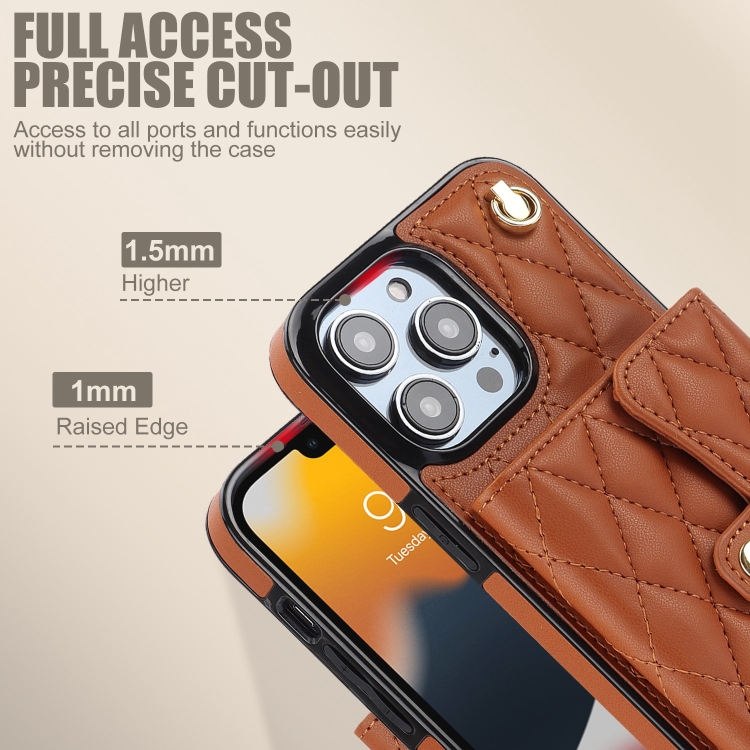 Funda de Cuero Crossbody Rhombic Horizontal para iPhone 13 Pro (Marrón)