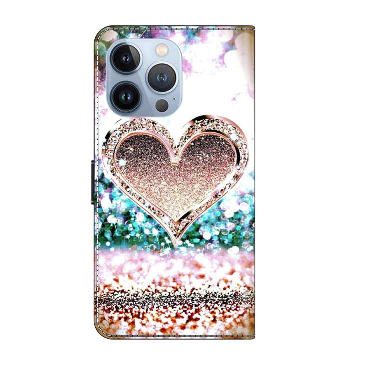 Funda Protectora de Cuero iPhone 13 Pro Crystal 3D a Prueba de Golpes (Corazón de Diamante Rosa)