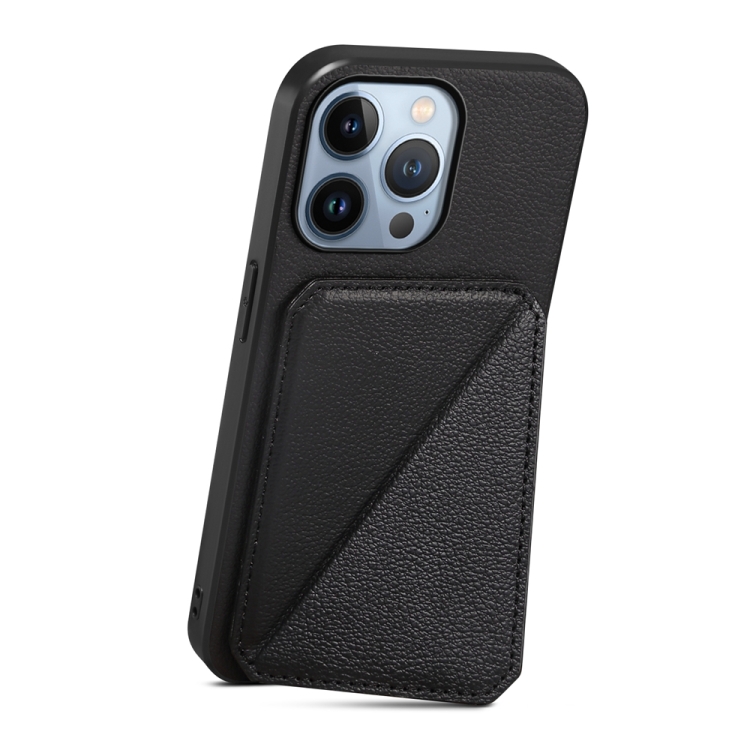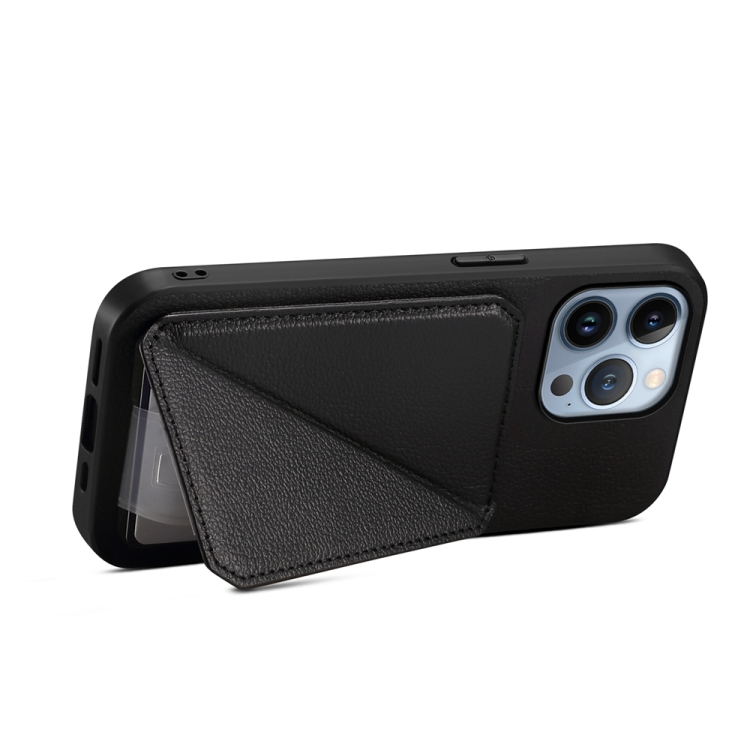 Funda para Teléfono iPhone 13 Pro D04 con Ranura para Tarjeta Dual y Textura de Becerro (Negro)