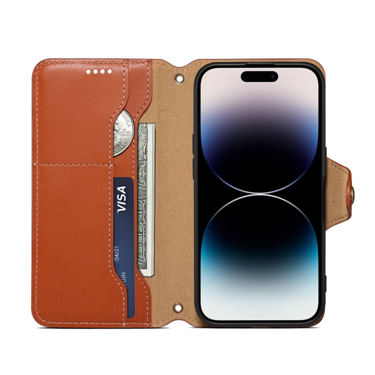Funda para Teléfono Denior iPhone 13 Pro Estilo Billetera Cuero Textura Piel de Vaca (Marrón)
