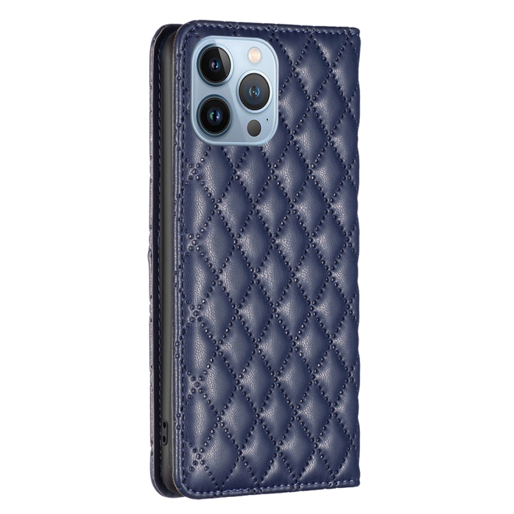 For iPhone 13 Pro Diamond Lattice Magnetic Leather Flip Phone Case (Blue)