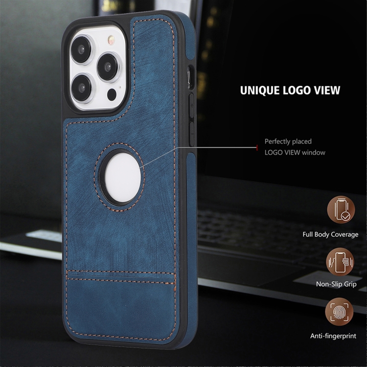 For iPhone 13 Pro Splicing Stitching PU Phone Case with Hollow Cutout (Blue)