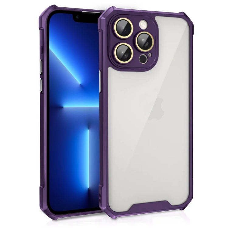 Estuche Acrílico para iPhone 13 Pro a Prueba de Golpes con Película de Vidrio para Lentes (Púrpura)