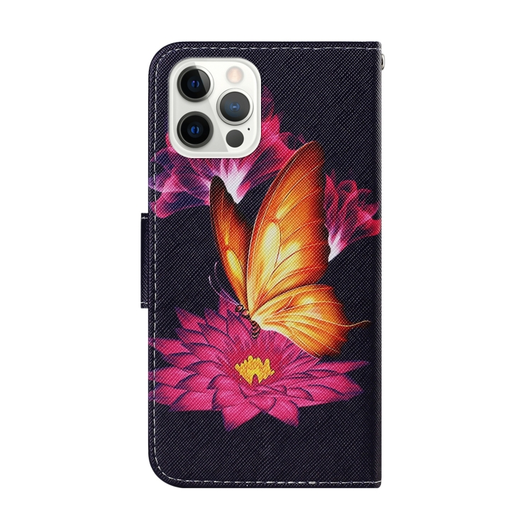 Estuche de teléfono iPhone 13 Pro Cuero con patrón dibujo coloreado (Mariposa Dorada Grande)