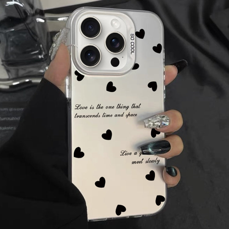 For iPhone 13 Pro Hybrid PC Silver Paint TPU Phone Case (White Love Hearts)