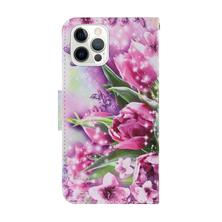 Estuche para Teléfono iPhone 13 Pro Cuero Patrón Dibujo a Color (Mariposa Rosa)