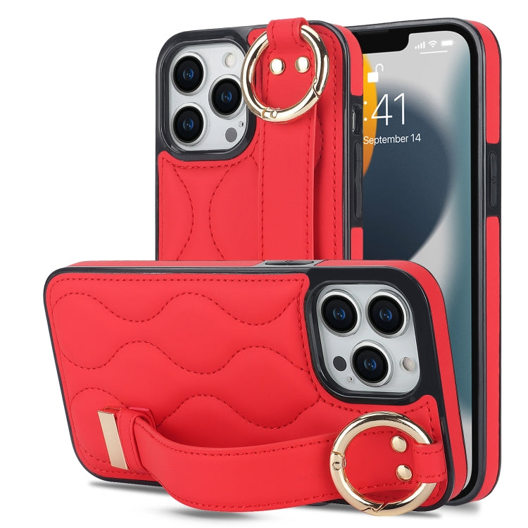 Funda para iPhone 13 Pro Antideslizante de PU con Anillo y Muñequera (Rojo)