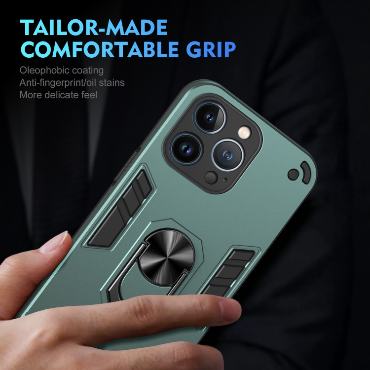 Funda para Teléfono iPhone 13 Pro con Soporte de Anillo de Metal a Prueba de Golpes (Verde)