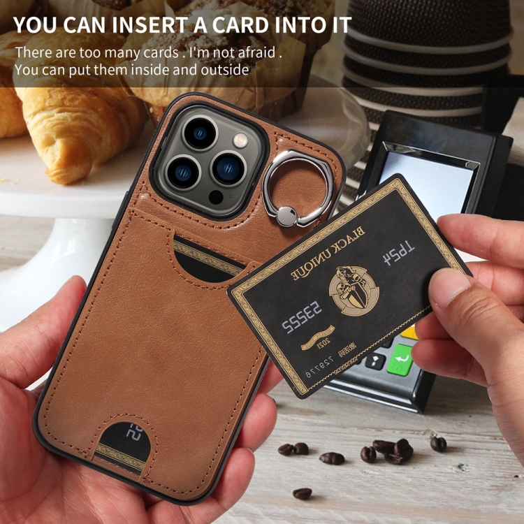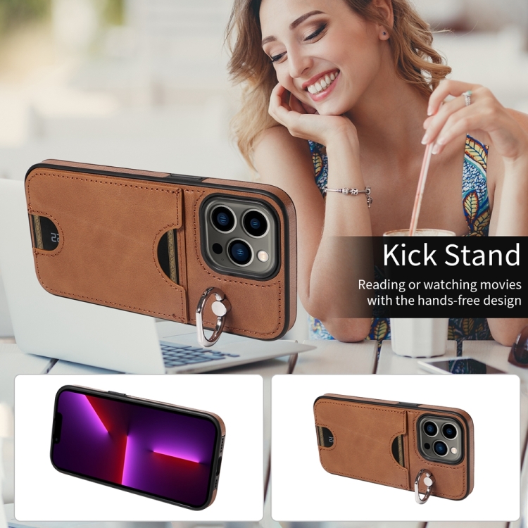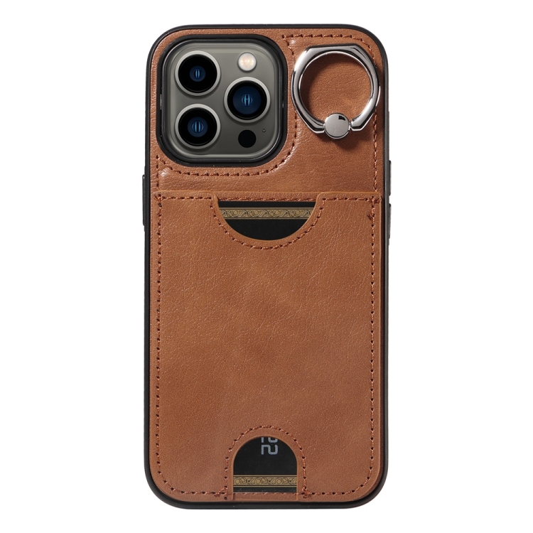 Funda para Teléfono iPhone 13 Pro Soporte Anillo Ranura Tarjeta Textura Pantorrilla (Marrón)