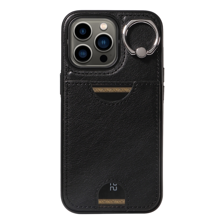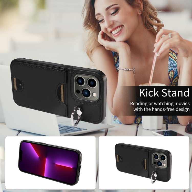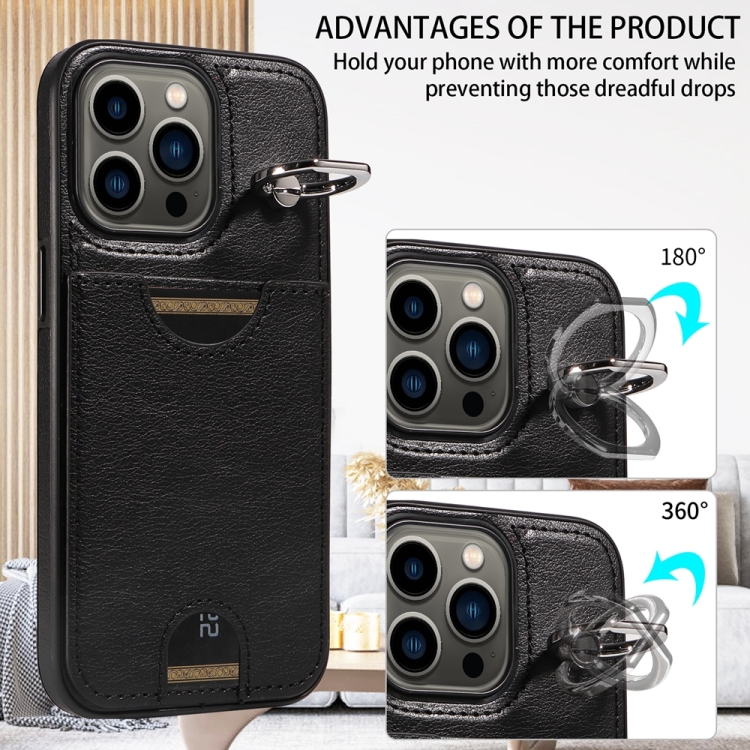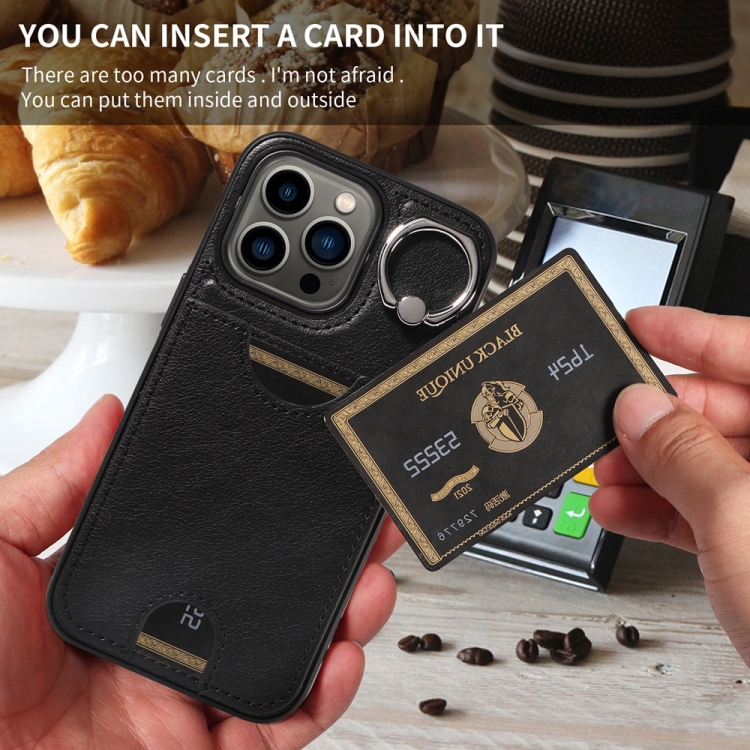 Funda para Teléfono iPhone 13 Pro con Soporte para Anillo y Ranura para Tarjeta (Negro)