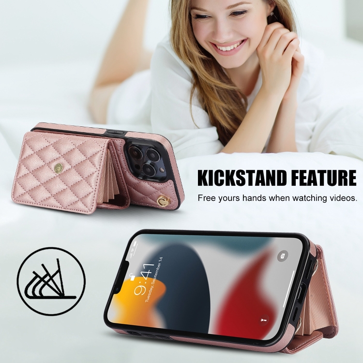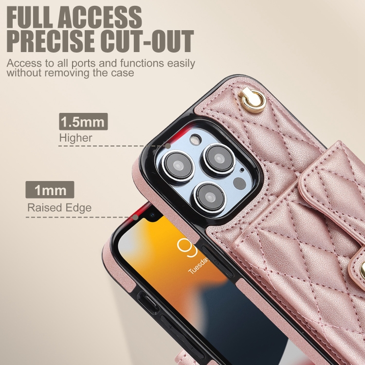 Funda para Teléfono iPhone 13 Pro Cuero con Billetera Horizontal Romboidal Cruzada (Oro Rosa)