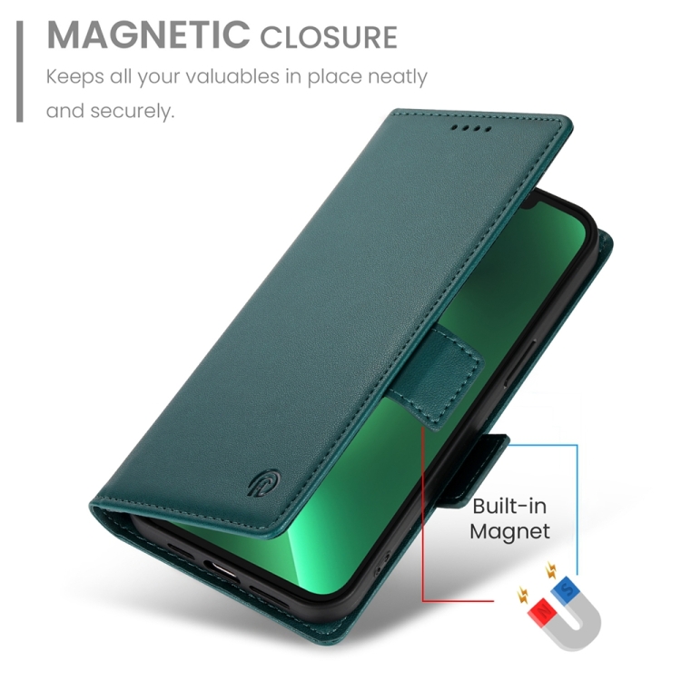 Funda para Teléfono iPhone 13 Pro Cuero Esmerilado Magnético con Hebilla Lateral (Verde Oscuro)