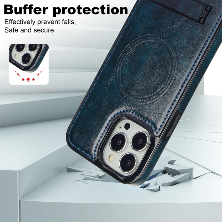 Funda para Teléfono iPhone 13 Pro Magsafe Soporte Invisible Cuero Retro (Azul)