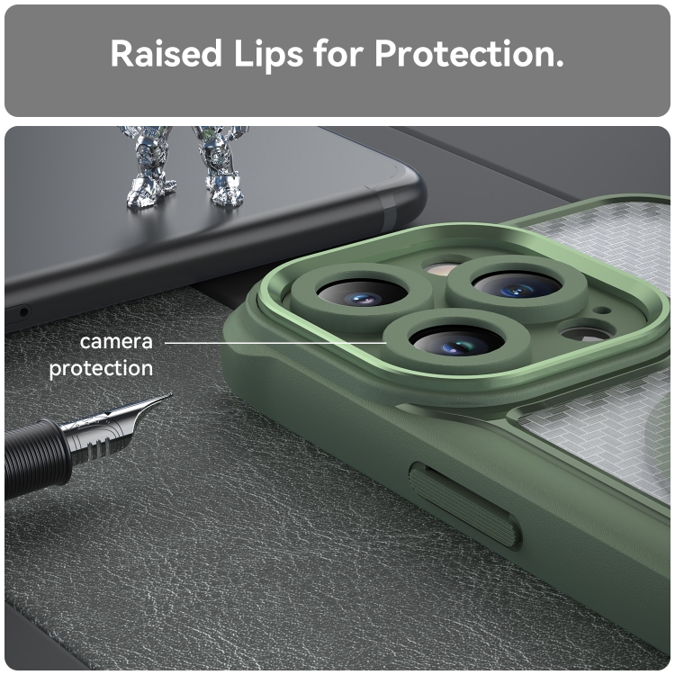 Funda para Teléfono iPhone 13 Pro Translúcida Magsafe con Textura de Fibra de Carbono (Verde)
