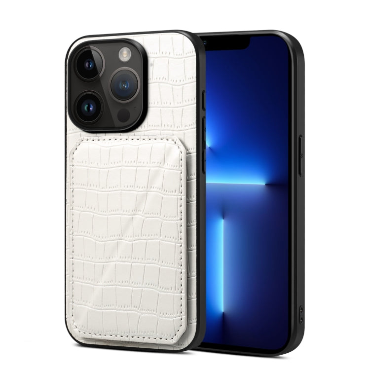For iPhone 13 Pro Case Faux Crocodile Leather Phone Back Cover with Kickstand (White)