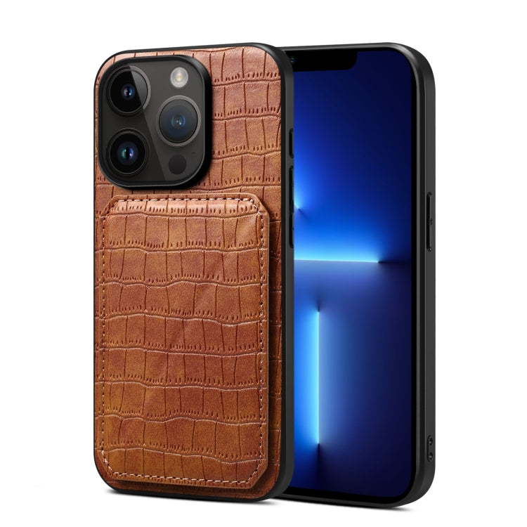 For iPhone 13 Pro Case Faux Crocodile Leather Phone Back Cover with Kickstand (Brown)