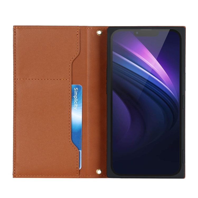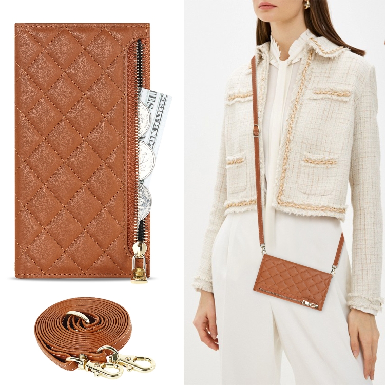 Funda de Cuero con Cremallera para iPhone 13 Pro Grid Texture Lanyard (Marrón)