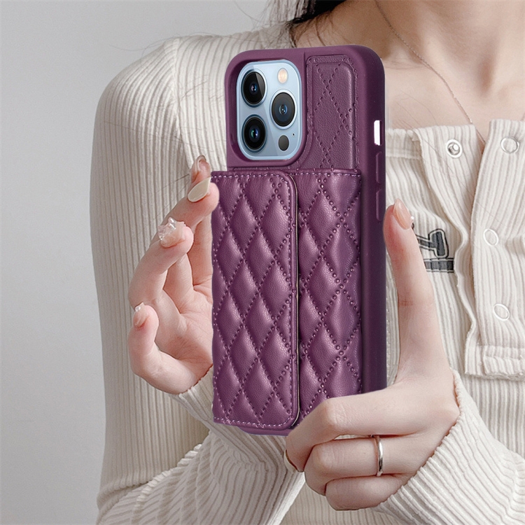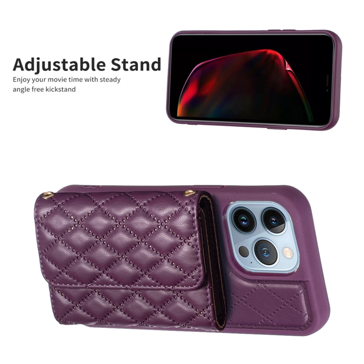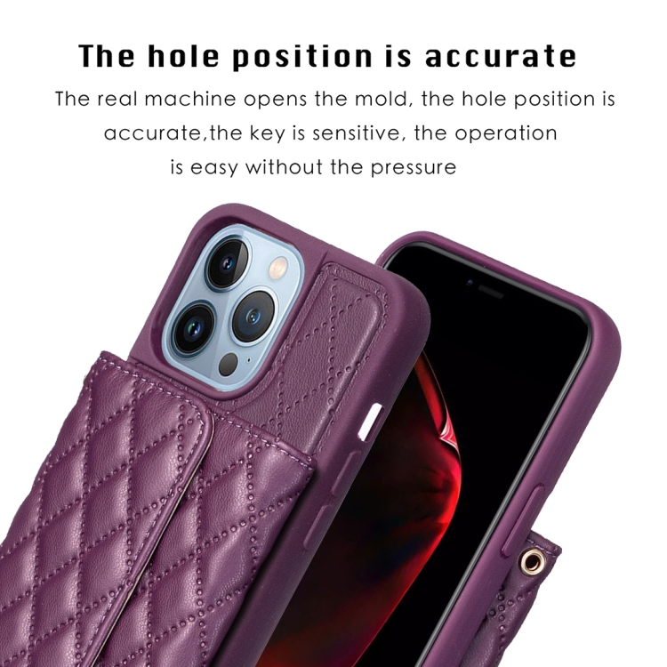 Funda de Cuero Wallet Horizontal para iPhone 13 Pro Rhombic (Púrpura Oscuro)