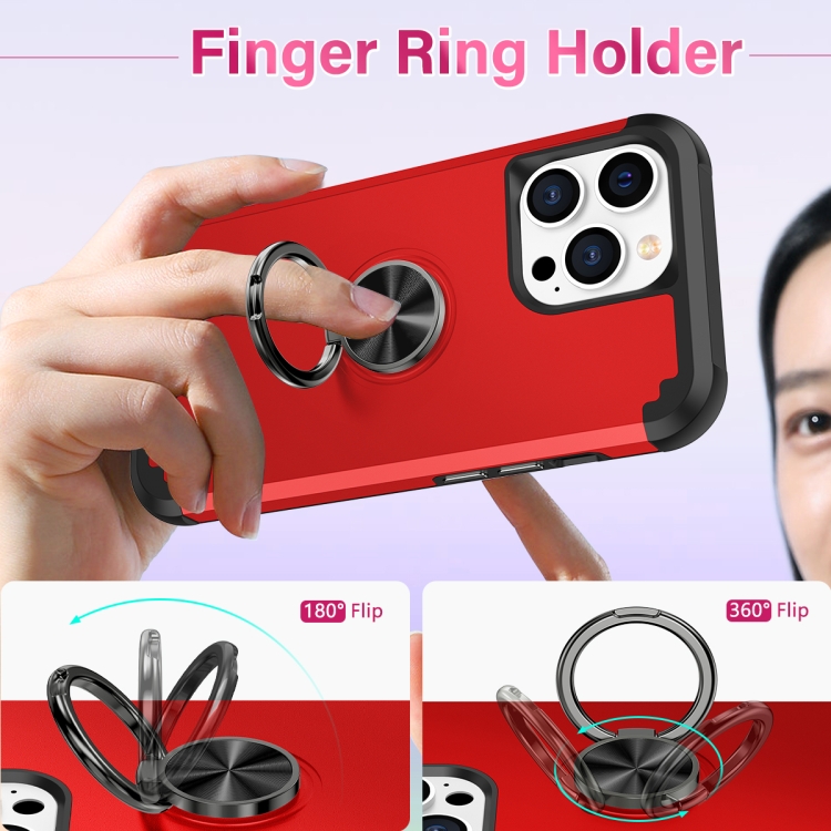 Funda para iPhone 13 Pro L2 Magnética con Soporte de Anillo Giratorio (Rojo)