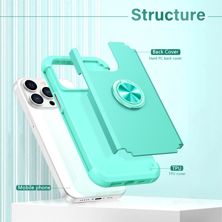 Funda Magnética para iPhone 13 Pro L2 con Soporte de Anillo Giratorio (Verde Menta)