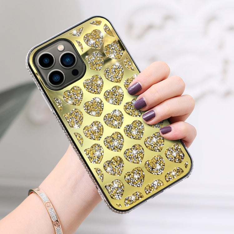 For iPhone 13 Pro Love Hearts Diamond Mirror TPU Phone Case(Gold)