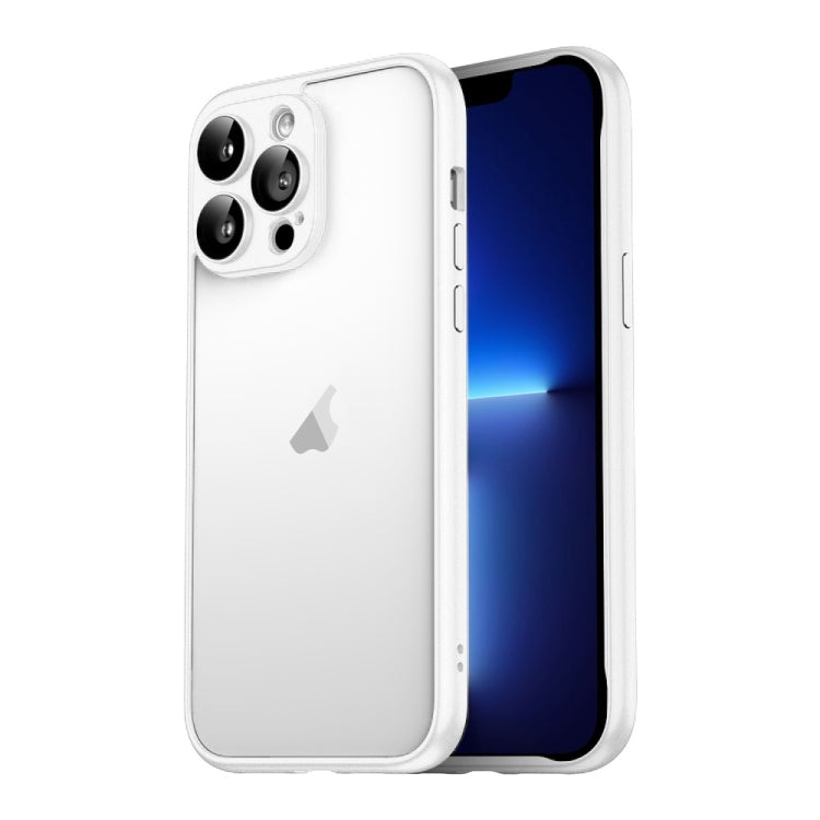 Título optimizado: Funda para iPhone 13 Pro Macaron PC Marco de Borde Puro con Película de Vidrio para Lentes (Blanco)