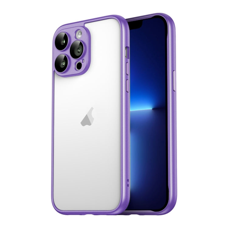 Carcasa para iPhone 13 Pro Macaron PC Marco de Borde Puro con Película de Vidrio para Lentes (Púrpura)