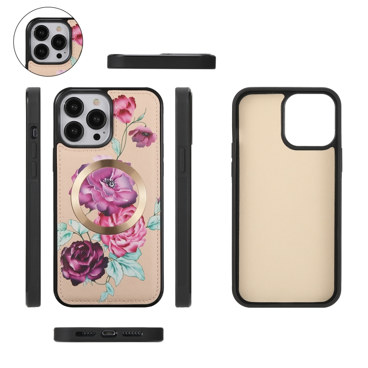 For iPhone 13 Pro MagSafe Flower Leather Phone Case Multifunctional Zipper Crossbody Wallet Case (Yellow)